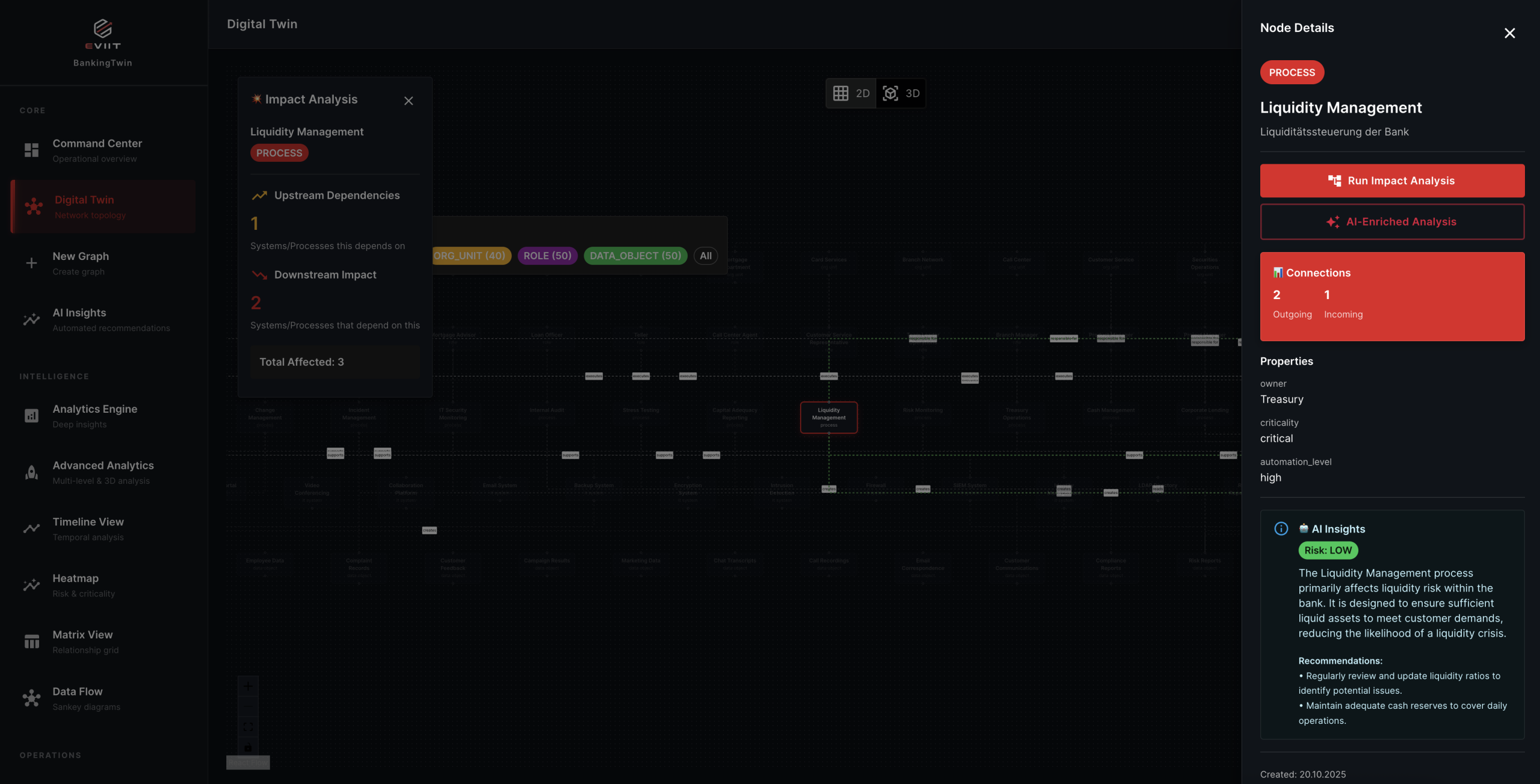 eviit bietet die einzige Organizational Intelligence Platform, die speziell für den Bankensektor entwickelt wurde. Wir gehen über reines Process Mining hinaus und schaffen einen lebenden, ganzheitlichen digitalen Zwilling Ihrer gesamten Organisation – einschließlich Ihrer Mitarbeiter und deren Kompetenzen. So ermöglichen wir Ihnen, nicht nur die Prozesse von heute zu optimieren, sondern auch die Strategien von morgen zu simulieren und ein wirklich agiles, zukunftsfähiges Finanzinstitut zu bauen.